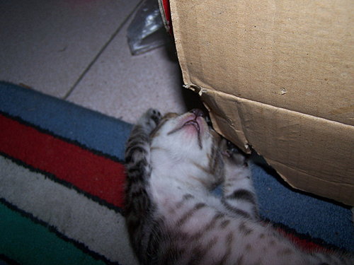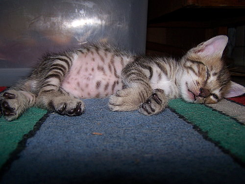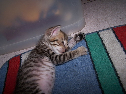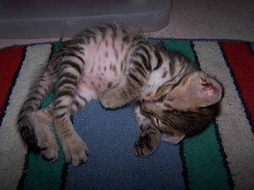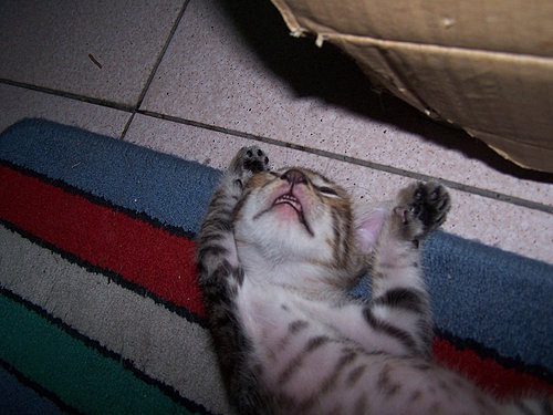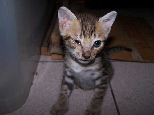 小貓漸漸的長大了,會跑會亂爬,好奇心越來越重了,小貓的性別應該是雌性吧,慢慢的越來越可愛,不過現在還是都吃母奶但偶爾會餵他喝牛奶 ,從出生到現在一個月多就可以到處跑了,尤其是睡覺的時候更可愛,不過好像長針眼,每天都要拿棉花棒幫牠擦眼屎,是不是剛出生的小貓咪都會長針眼???