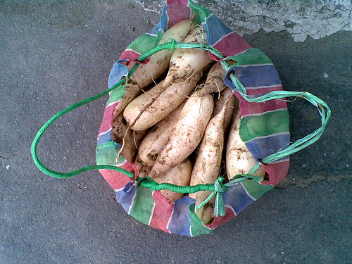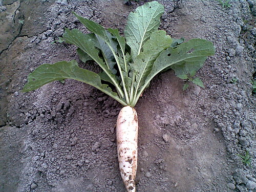 然後跟著爺爺去蘿蔔田裡面拔蘿蔔,吃蘿蔔時你可曾想過蘿蔔在田裡如何生長,今天總算體會到了,蘿蔔真的是用拔的,還真的是一個蘿蔔一個坑。拔蘿蔔不用任何技巧,不過要拔哪個蘿蔔就得靠經驗,要挑一定要挑蘿蔔頭突出地面的,突出越多越好,代表蘿蔔長的夠大。