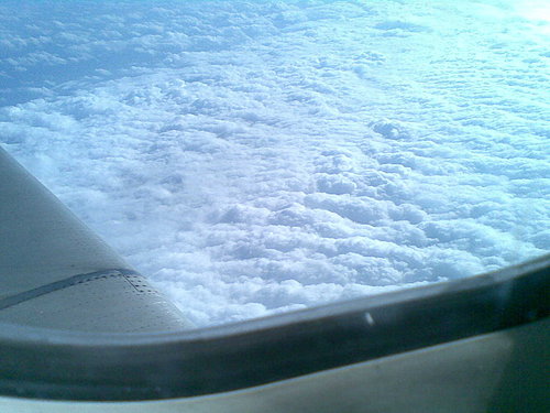 由於是第一次出國,所以飛機座位當然是要挑靠窗的,整個旅程約90分鐘 ,吃了簡餐,欣賞雲海後,就準備『登陸』囉!途中往下鳥瞰看到一坐機場,以為準備Landing了,結過是飛了過去,我猜那個地方應該是香港吧,因為會經過過的島嶼又有機場,又有大建築物,應該沒錯。