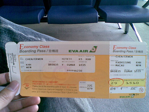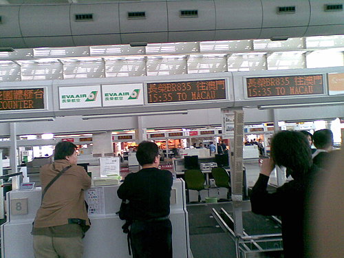 下午3點搭乘長榮航空,高雄飛往澳門的班機,雖然不是第一次搭飛機,但卻是第一次在民間機場出境,很多細節還不是很懂,不過整個程序還蠻簡單的,基本上就是登記、檢查、出境,然後搭飛機。