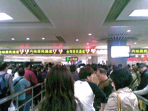 到了澳門關外,終於見識到大陸的特色,就是人山人海,連出個關都是滿滿的人,十幾個窗口,後片排滿人龍,等了約40分後終於出關,緊接著又準備入珠海關,過了珠海關後才算是進入中國大陸。