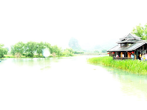下個行程參觀【世外桃源】,此景點是由台灣人經營,利用當地的風景,營造想像中陶淵明的桃花源並且集合當地少數名族【壯族、瑤族、恫族】的建築及文化特色,晚上到【陽朔】,外國遊客最多的地方,到處都是小酒吧PUB,自由活動時間,可以好好的SHOPPING,沿岸的灕江雲霧繚繞,就像一幅山水畫。
