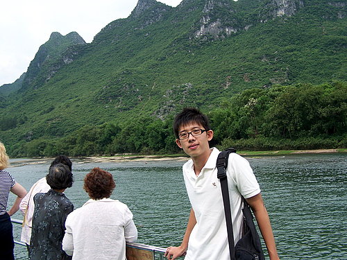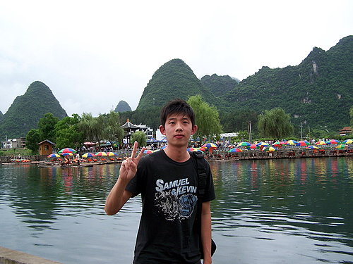 行程第一天坐飛機轉機,晚上住宿漓江大瀑布酒店(在大陸酒店=台灣的飯店),第二天坐船環遊【漓江】到【荔浦】,沿途就是欣賞大自然,沿途偶爾會下點小雨,天氣時好時壞,下雨時可再輪船內用餐邊看風景也別有一番風味,輪船上到處都是很多老外。