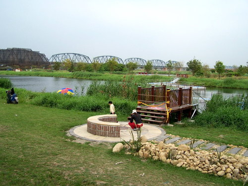 隔了一個冬天沒來,舊鐵橋也有些有些不一樣了,溼地的水潭多了浮板便道,可能有點危險所以並沒有開放,舊的鐵橋鏽蝕太嚴重也正重新上漆,還有人放風箏的人也越來越多,壘球場也上映土洋大戰的戲碼。