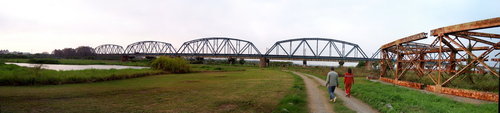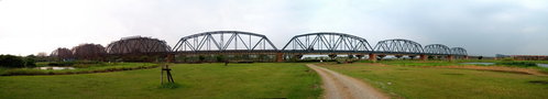 順便也替舊鐵橋拍照來製【全景圖】作紀錄,舊鐵橋的各種設施越變越好,休閑遊憩的人也越來越多,發展相較於高屏溪對岸隸屬於屏東的舊鐵橋,簡直天差地遠。