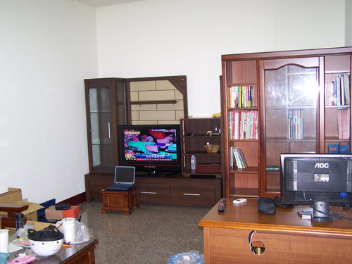 客廳新增茶几座椅、書櫃及桌上電腦和37吋BENQ LCD TV,順便測試LCD畫質及功能。