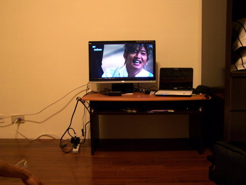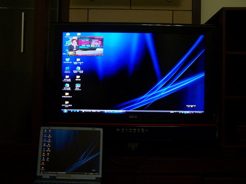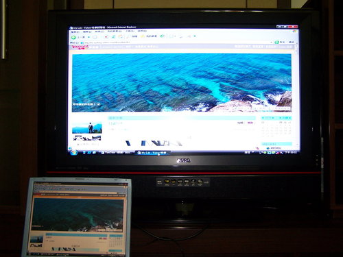 接上VGA線畫質跟在22" LCD差不多,只是37" 比 22"爽度更大,由於筆電沒有HDMI槽,所以暫時還沒辦法享受FULL-HD畫質,等數位電視盒補齊後在來測試。