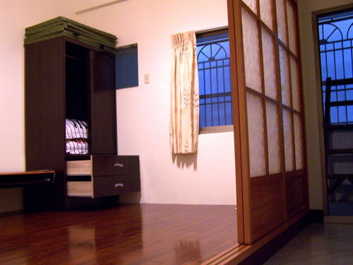 2F內側日式和室原本就裝潢好,配合日式風格只新增榻榻米、小茶几及置物櫃,和室的好處就是到處都可以睡,小房間也可以有大空間,躺著上網看電影泡茶聊天。