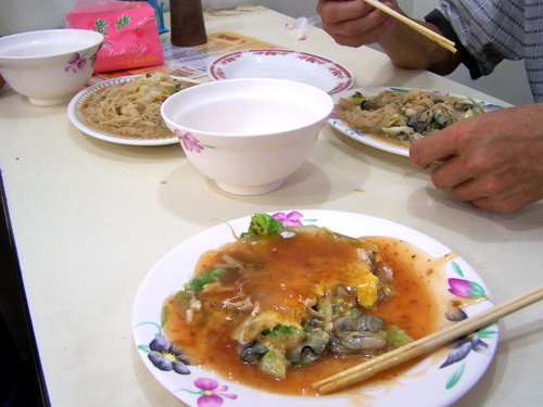 接下來到布袋港買海產時卻遇到大雷雨,一如往常的在布袋光觀漁市買魚貨及吃新鮮的蚵仔煎還有蚵仔麵線。
