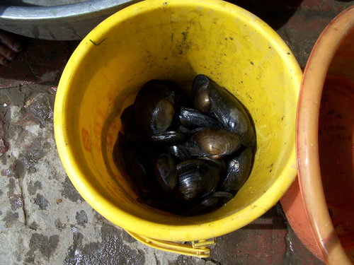 開車沿著河堤到達目的地,跟老哥還有外婆去走了段小路,原來是一小片像沼澤的池塘,在乾涸處有許多像【蚌類】的空殼,我想大多是被白鷺鷥吃掉居多。
