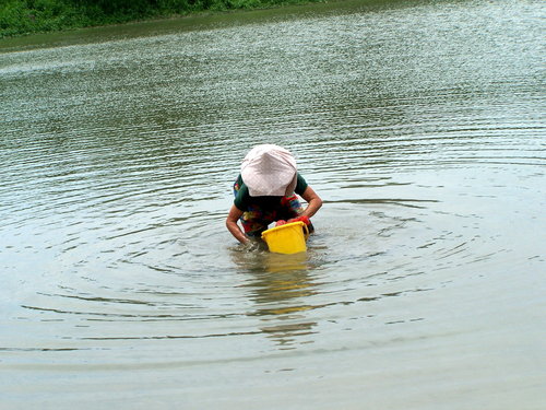 身陷泥沼又寸步難行外加第一次在爛泥巴裡摸田螺,不過我是用腳摸,連老哥也摸不著頭緒,反到是外婆很熟練的撈了好多。