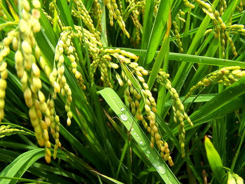 而田裡的金黃色稻米,也都已經快成熟,只是下雨沒辦法收割
