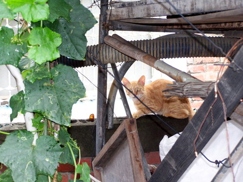 到外婆家時也將近中午12點,鄉下地方依然還是十年如一日,過年回來時看到的小貓還在,小雞變中雞,順便拍了外婆家的全景圖。