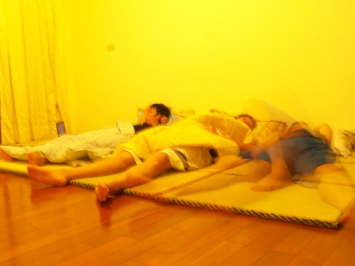 晚上回去新家睡覺,四兄弟擠在和室吹冷氣,睡在硬硬的塌塌米上還真的有點不習慣,一直聊到12點,關燈、睡覺。