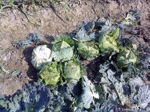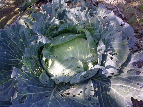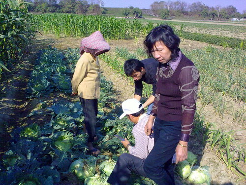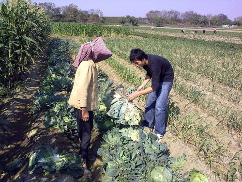 接下來換地方,這次是高麗菜,雖然高麗菜已經很低價,但是阿嬤種的是有機的無農藥的,可清楚看見菜被蟲咬的痕跡,第一次收成高麗菜還抓到菜蟲,可以說是現實版的【開心農場】。