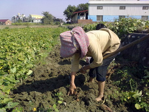 本來期待的油菜花季,現在只能在路面看到零星的幾株,還是會去田裡,不過這次是挖地瓜(紅心番薯),距上次(2008)來挖地瓜也隔了快兩年,生疏的動作又被阿嬤重新再教育一次。