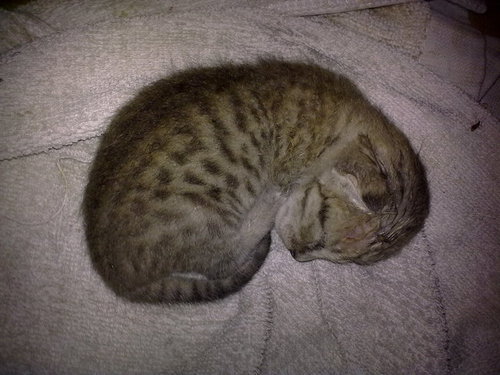 2010.7.9 正確日期大約再7.2,隔壁又有一隻小喵被遺棄,沒有母貓照顧整天喵喵叫,所以就帶回來領養了。本以為母貓可以當奶媽,結果母貓只照顧自己的孩子,可憐的小喵,就這樣孤伶拎的。