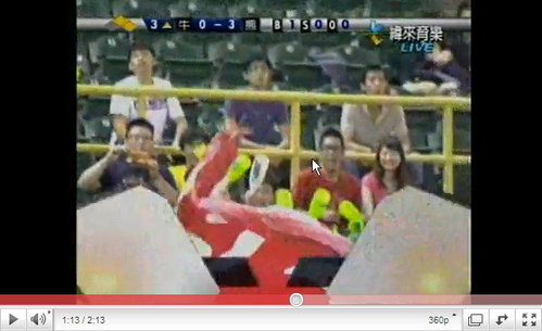 2010.7.22 星期四,非假日進澄清湖球場看棒球,剛好有免費內野票,剛好又是牛熊隊戰,剛好又是張泰山有1000分打點機會,剛好又好巧不巧上電視了,雖然只是有短短1秒的曝光而且還模糊,但是還是值得紀念。