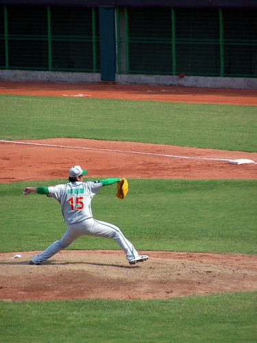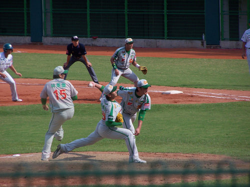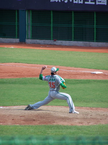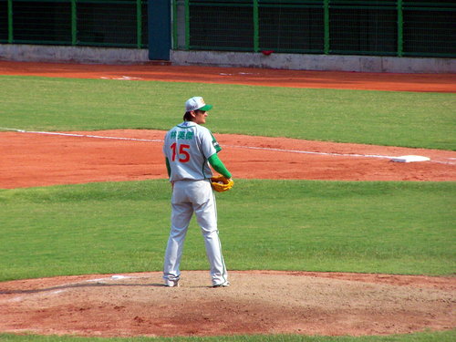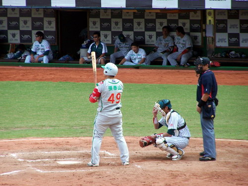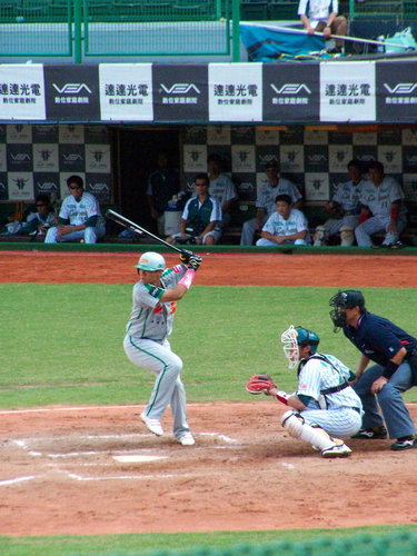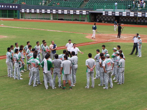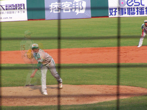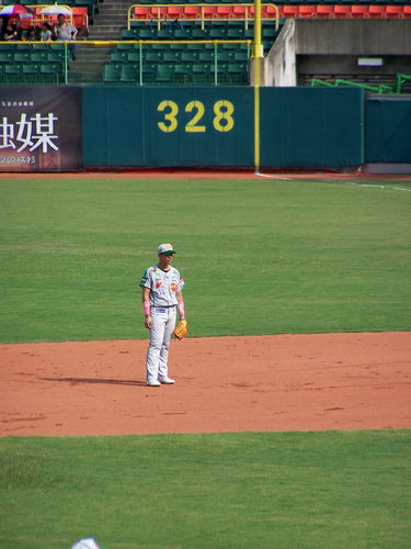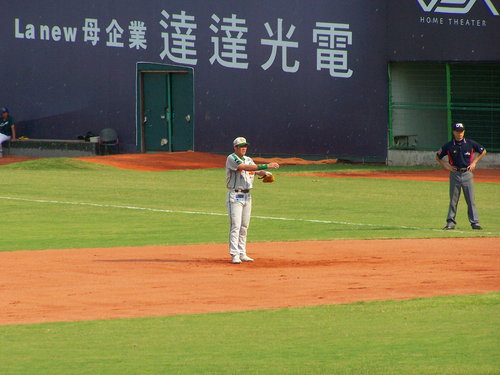 2010.10.3 算一算今天應該是今年第5次進場看球,但只有一次是自己掏腰包,其他四次則是免費票。原本9/19開打的球賽因為颱風天延到今天補賽,時間則是下午2點開打。