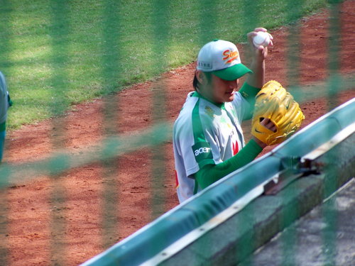 今天的先發投手是左投的【林英傑】,之前進場都沒遇到,難得有內野票當然是靠近拍囉。